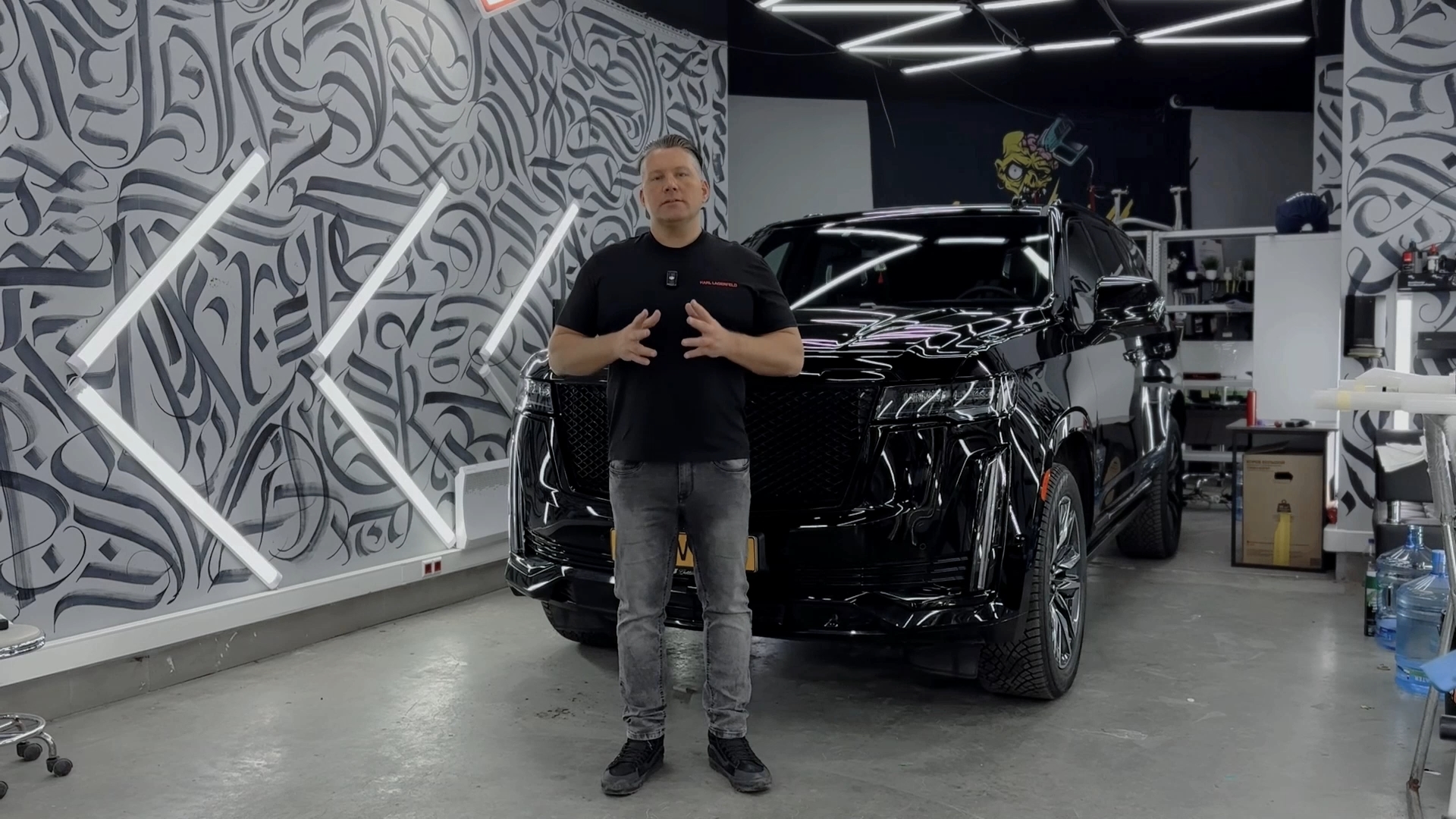 Оклейка Porsche Cayenne чёрным матовым полиуретаном