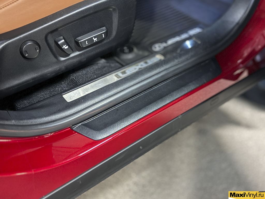 Этот Лексус приехал к нам не в самом лучшем виде — на автомобиле присутствовало большое количество царапин и сколов. Мы выполнили трёхфазную абразивную полировку, чтобы убрать даже глубокие царапины и вернуть кузову насыщенный блеск. Дополнительно отполировали низ дверных проёмов и оклеили их прозрачной полиуретановой плёнкой, чтобы защитить от возможных повреждений — ведь на этом автомобиле постоянно перевозят детей, а как мы знаем, некоторые из них порой как Кракен — не щадят ничего 🙂