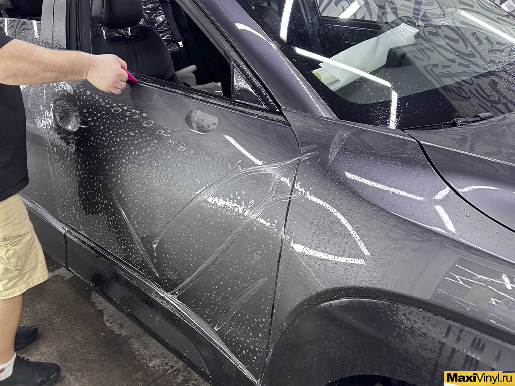 Оклейка была произведена проверенным материалом от бренда Mono PPF, известным своей превосходной защитой, высоким уровнем глянца и отличными гидрофобными свойствами. Дополнительно мы защитили уязвимые элементы экстерьера: панорамный люк на крыше и черную глянцевую вставку в передней части бампера.