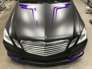 Полная оклейка Mercedes-Benz E класс в черный мат + наклейки
