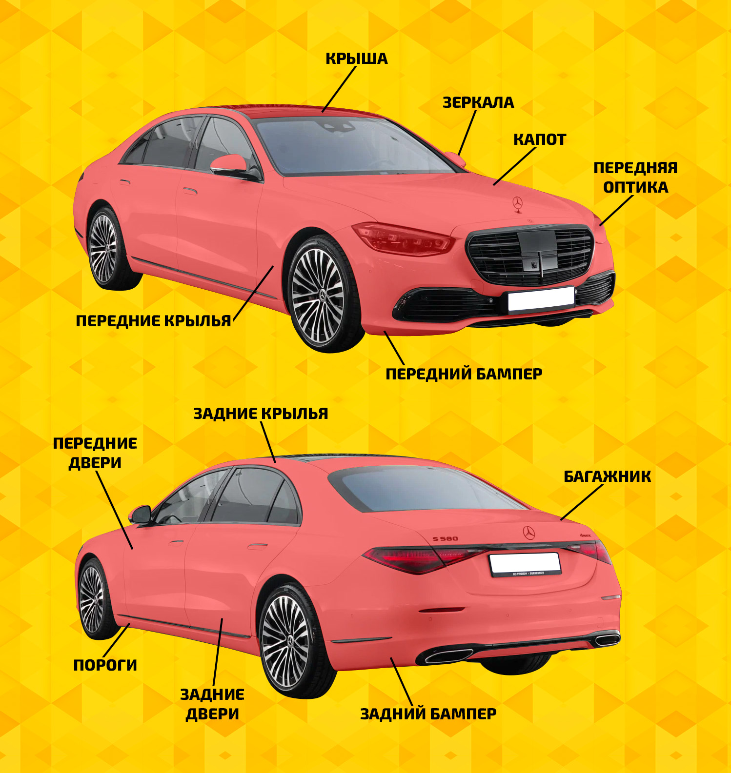 ЧТО ВХОДИТ В ПОЛНУЮ ОКЛЕЙКУ АВТОМОБИЛЯ ПРОЗРАЧНОЙ ПОЛИУРЕТАНОВОЙ ПЛЕНКОЙ